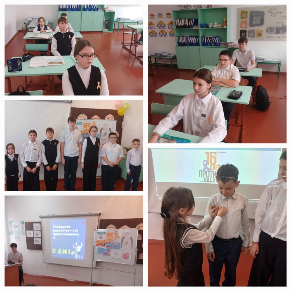 "Бузулук ауылының негізгі орта мектебі" КММ 04.12.2025 ж. "Гендерлік зорлық-зомбылыққа қарсы 16 күндік белсенді іс-қимыл " іс-шаралар жоспарына сәйкес мектепте" қызғылт сары таспа " акциясы өткізілді.Мақсаты: балаларға қызғылт сары таспа кию арқылы адам зорлық-зомбылыққа қарсы екенін және оған қарсы тұруға дайын екенін түсіндіру.Қызғылт сары таспа оптимизмді, энергияны және өмір сапасын жақсартуға деген ұмтылысты білдіреді.